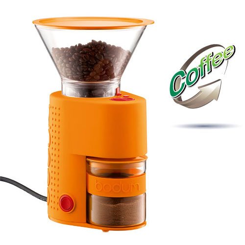 Cheap "Bodum Bistro Burr Grinder - Orange (includes 1lb Colombia Supremo Gourmet Coffee)" Discount Review Shop